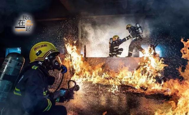 消防官兵——虽看不清战士的面孔,但看到了一股毫不愄惧的力量!